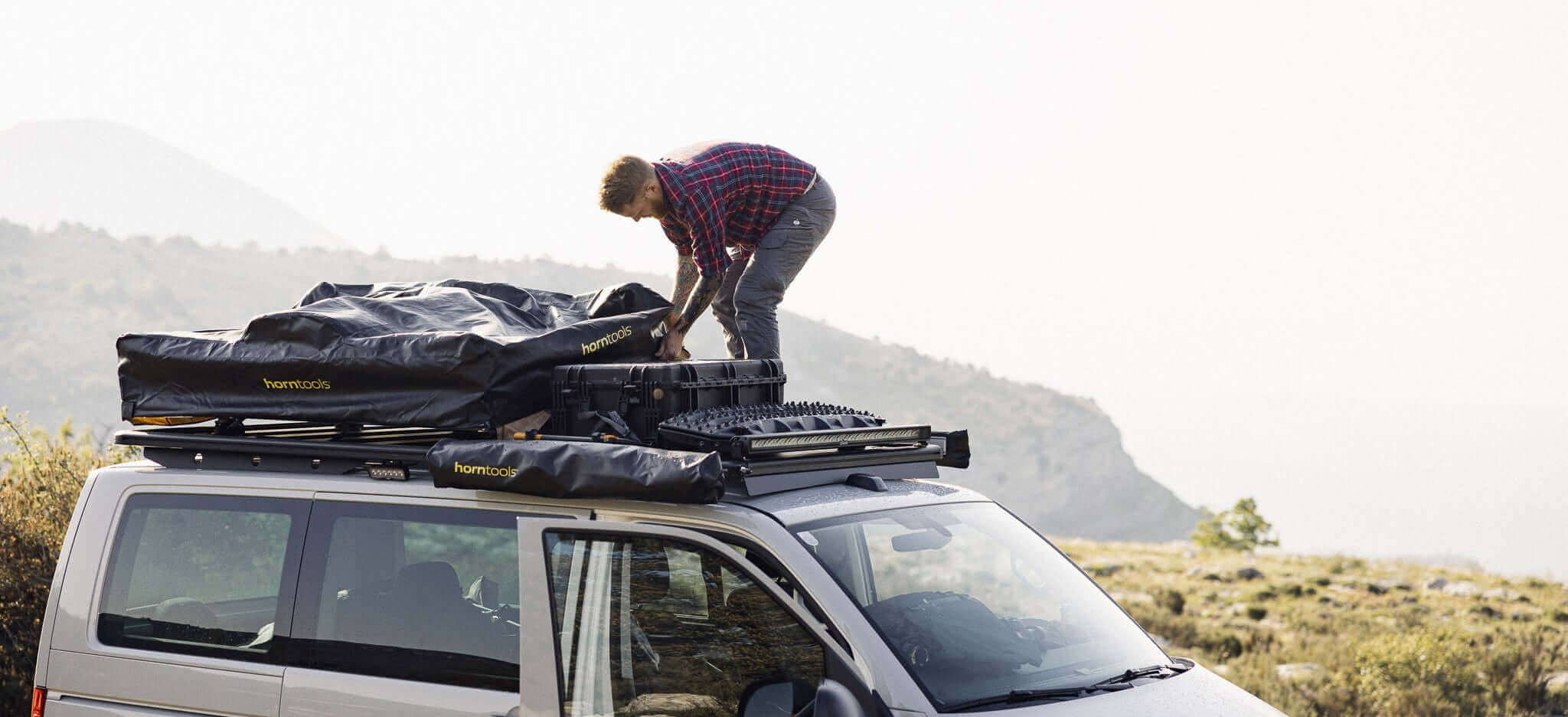 horntools bietet ein umfassendes Sortiment an Zubehör für deinen ExRoof an. Passe deinen ExRoof individuell an deine Anforderungen und Bedürfnisse an und sei bei jedem Abenteuer und jedem Arbeitseinsatz optimal ausgerüstet.