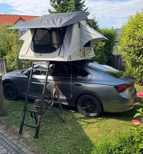 Prinzipiell kannst du ein Dachzelt auf jedes Auto montieren, allerdings ist ein auf dem Autodach befestigter Dachträger dafür erforderlich.