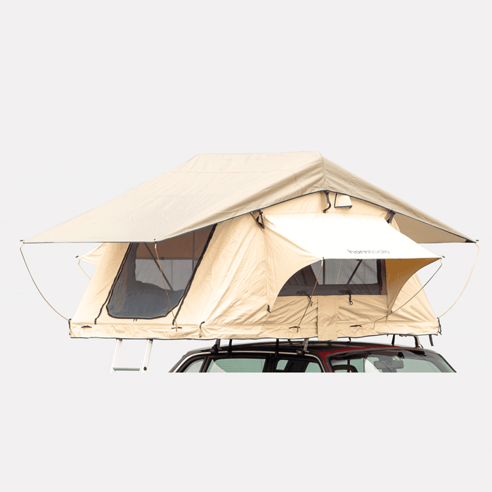 Ondanks het lichte gewicht van 50 kg (zonder ladder) is de Trapper Joe daktent bestand tegen de elementen. De regenhoes van 1000 D polyester met een waterkolom van 9000 mm houdt de binnenkant van de tent droog. Met zijn driedelig geïsoleerde aluminium plaat beschermt hij je bovendien optimaal tegen de kou.