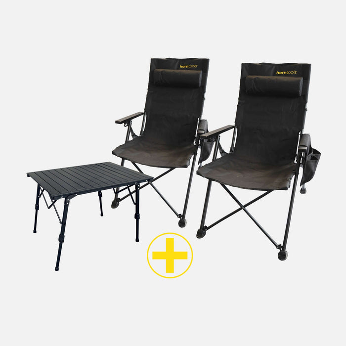 Spare jetzt 10 % auf das horntools Campingmöbel Set Recliner – dein Komfort-Upgrade fürs Camping.