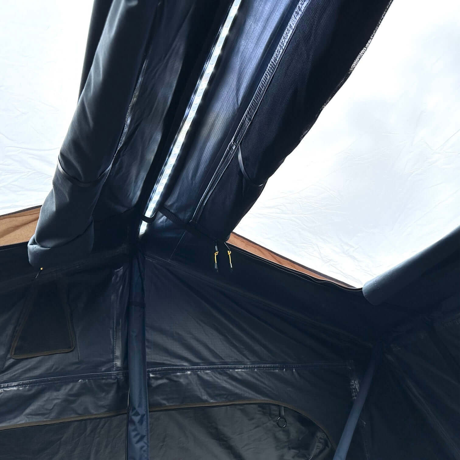 Ambiente im Dachzelt: Die LED-Leuchten sind im Innenraum des Dachzelts integriert und können bequem per dimmbarem Schalter bedient und zwischen drei unterschiedlichen Farbtönen hinundher geschaltet werden.