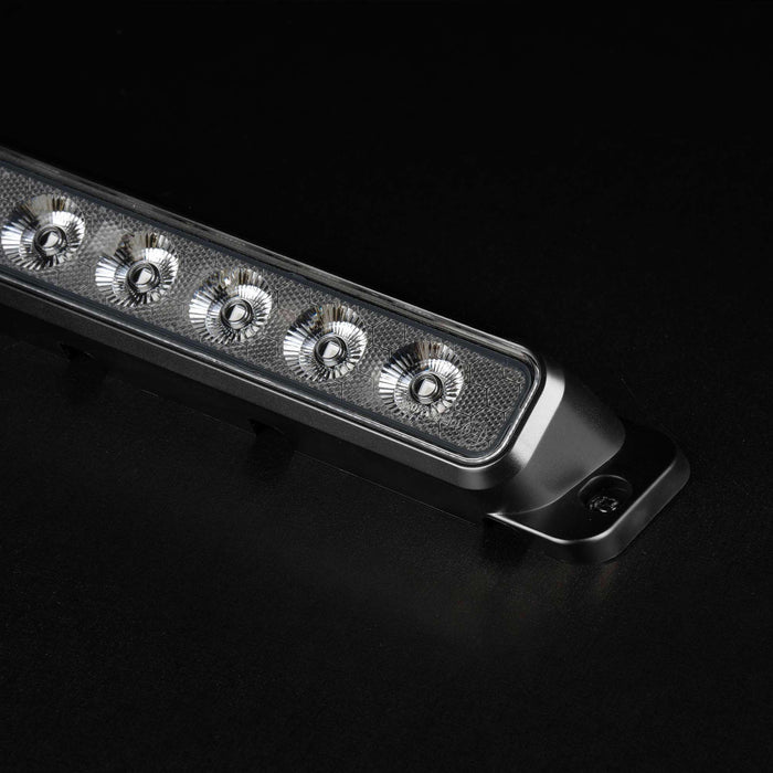 Dank dimmbarer Funktion kannst du die Lichtleistung flexibel um bis zu 50 % reduzieren und optimal an deine Anforderungen anpassen. Die schlanke Bauform (566 × 52,8 × 43,9 mm), das geringe Gewicht und das 2500 mm lange Kabel ermöglichen eine vielseitige und einfache Montage an unterschiedlichsten Fahrzeugen.