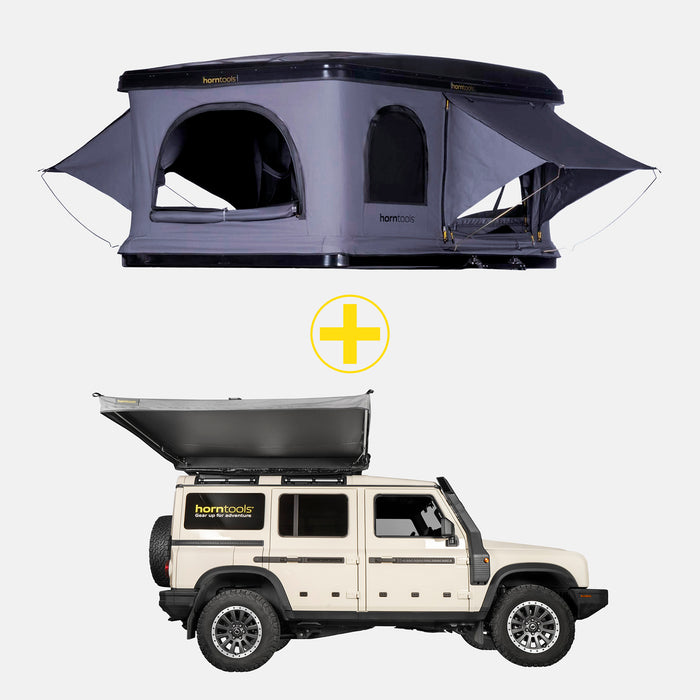Themis Bundle – Kompaktes Dachzelt & Markise Horizon Straight zum Vorteilspreis